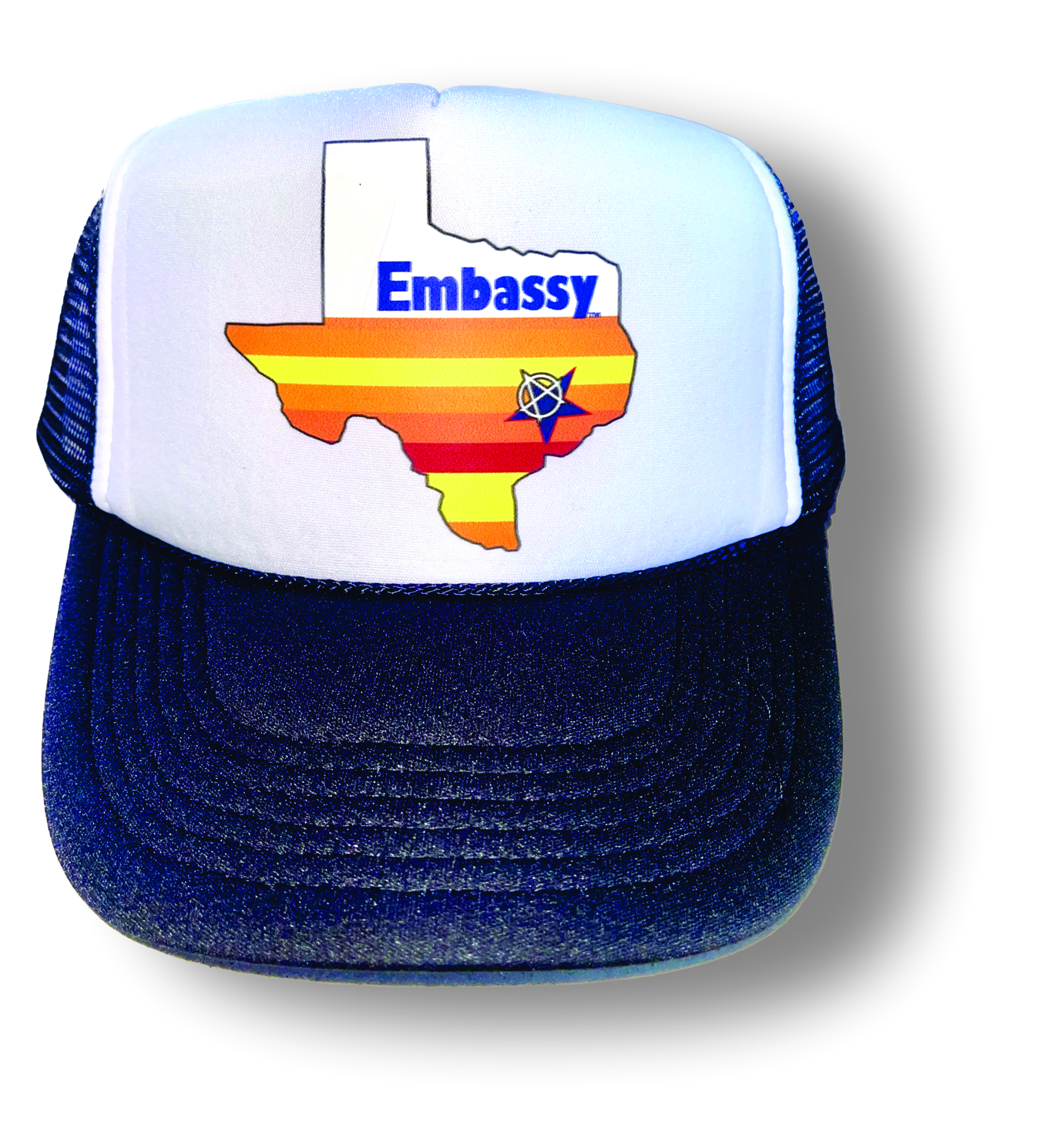 Say hello to the Embassy Astros “Tribute” 5 panel foam snapback trucker cap. Artwork by Lee Leal. It’s a Houston thing.