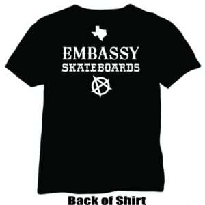 Embassy Skateboards, RAMONES, Texas Legends, T-Shirt, on 100% Cotton Black, with White Screen Print