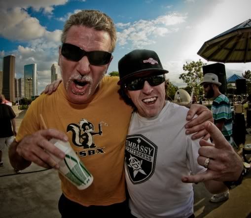 Another Rock the Cradle for the Johnny Romano kicks cancer Foundation is under our belt, and this one lived up to the hype. The skate full event raised $25,000.00 and had enough blood donations to save 75 lives. A huge TEXAS shout out to all the sponsor’s that supported the event. Congrats to Ben Johnson, Steven Pineiro, Juan Pineiro, Ken Fillion, Todd Prince, all the Embassy riders that represented Loud & Proud. Highlight of the day was TP in the bowl shirtless. Double D said it, “It’s been 20 years since I’ve seen Todd Prince on a board”. Actually TP has been ripping it up on Old man night @ Southside for sometime now. Can’t keep an old dog off his board!! Todd had fun with it. The Pineiro brothers, came into town on a mission. Steven has melon 5’s on lock. Steven landed his 720 on the big face wall. I think they said, it’s the 1st 720 in Bowl Riders comp, it was sick. I will say, when the brother’s gain some weight, and get a little bigger…LOOKOUT! Juan his younger brother (11 months younger) skates fast, smooth, and blast overhead backside airs at will, with style. These two young guns are going to be ripping it up for many moons to come. What can I say about Embassy Team Captain Ken Fillion, he brought his arsenal of inverts that would give anybody migranes. He did 12 inverts in a row, back-to-back-to-back-to-back, sadplant to eggplant to invert, he just kept on ticking. He also blasted higher than most, not bad for the OG. Tex Gibson was on hand as a celebrity judge, to judge the “Masters” division, and just hang out. Craig Johnson was in the house as well. Speaking of Craig Johnson, I think I saw half the crowd sporting the new Craig Johnson graphics T-shirt. His new model will be out for the holiday’s along with the Todd Prince! Embassy Street fighter Edward Sanchez was on hand to soak in the festivities, and give support. Really he was on hand to see if he could keep up with Craig & Tex @ the Lola’s after party. What happens at Lola’s, stay’s @ Lola’s, so that’s a different story. The Embassy Girls were in full effect, giving out Embassy swag through out the day. Chris Gentry is always a riot, he represented strong with his heel flip body jar and the Phillips 66. It’s always a party, it’s always a good time, it’s always a headache in the morning. Overall it was a killer day, like the old Texas comps of the 80’s. The 80’s were the blurry years. It’s rad to see the same cast of characters living it Loud and Proud. I want to thank Gibson and the Embassy heads for putting me on that Greyhound and bribing me to come out for the weekend. Until next time, nuff said. Below are a few pics. photo’s by: GROOVEHOUSE and Lee Leal