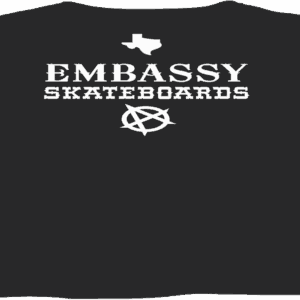Regular Tees $25.00 – $35.00Price range: $25.00 through $35.00 Select options This product has multiple variants. The options may be chosen on the product pageIntroducing a fun series from the Lee Leal photo vault. Here’s a film proof of a Craig Johnson 2019 session at the North Houston Skatepark. Full color madness on black 100% cotton t-shirt. Comes with the “Classic” Embassy logo in white, screen printed on the back. Available in Small- XXL