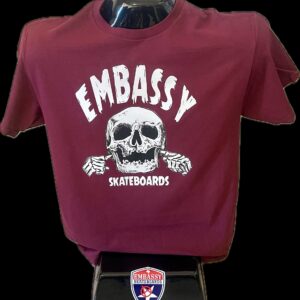 Regular Tees $30.00 Select options This product has multiple variants. The options may be chosen on the product pageIntroducing the new Embassy logo by Shane Munce. This logo comes to you in a Spanish faded bleed. Silkscreened on black 100% cotton t-shirt. Comes with the “Classic” Embassy logo in white, screen printed on the back. Available in Small- XXL