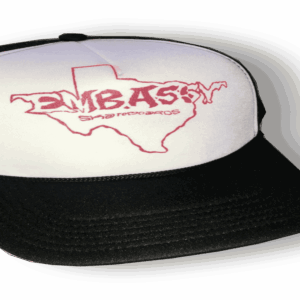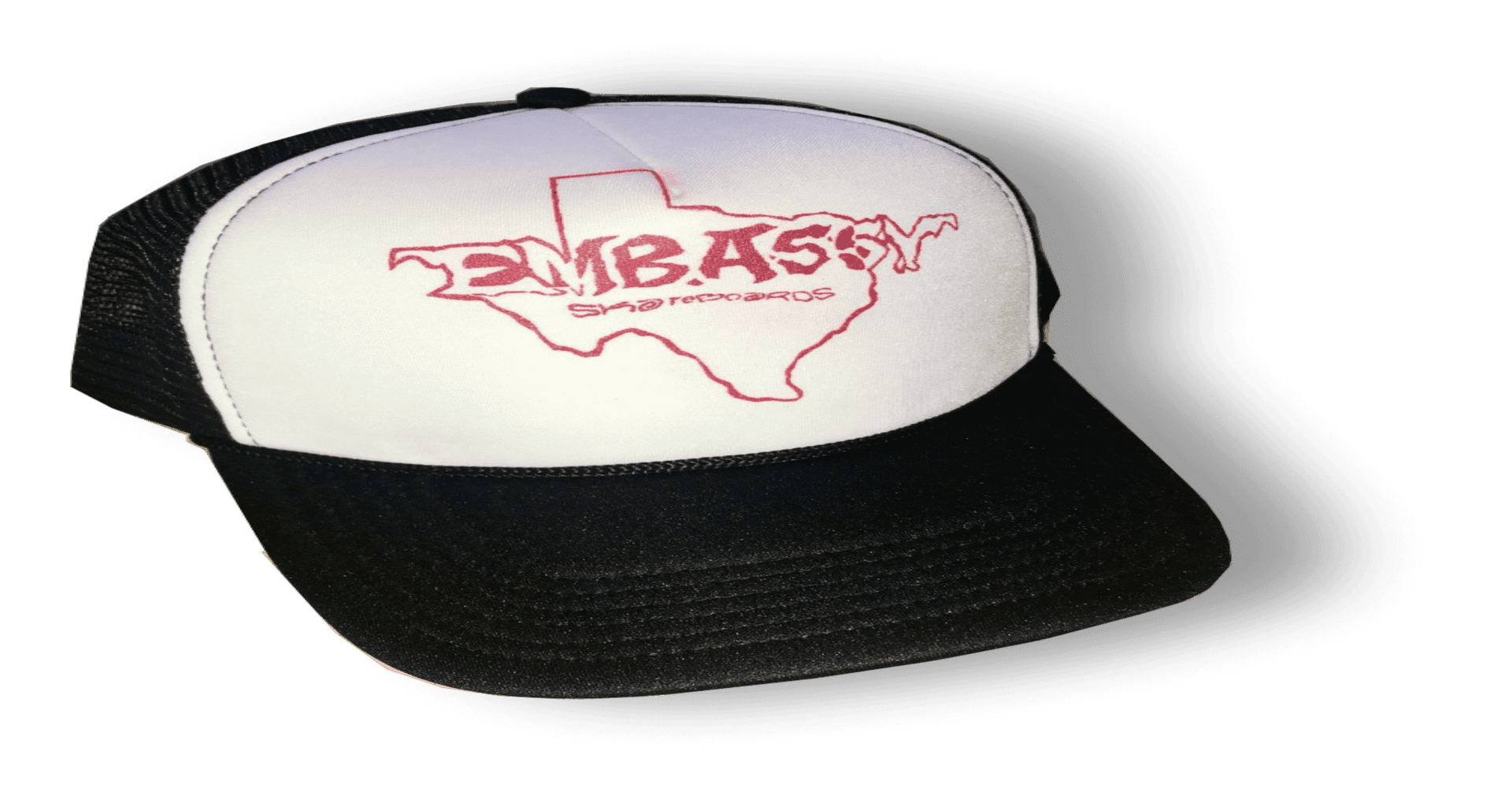 Embassy Skateboards new RED TEXAS logo, trucker hat. Artwork by Shane Munce.