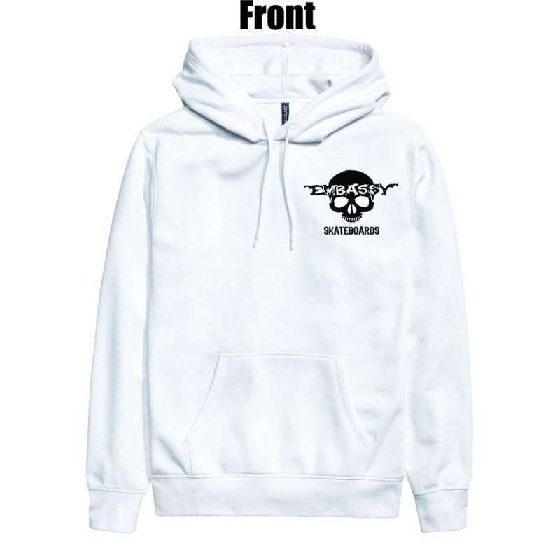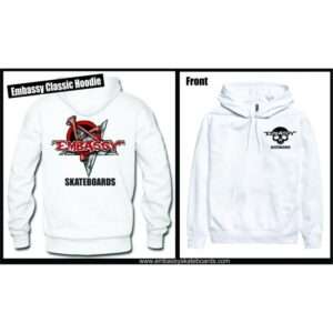 Embassy Skateboards, 100% cotton heavy hoodie, with the Munce Embassy logo. Perfect for any occassion.