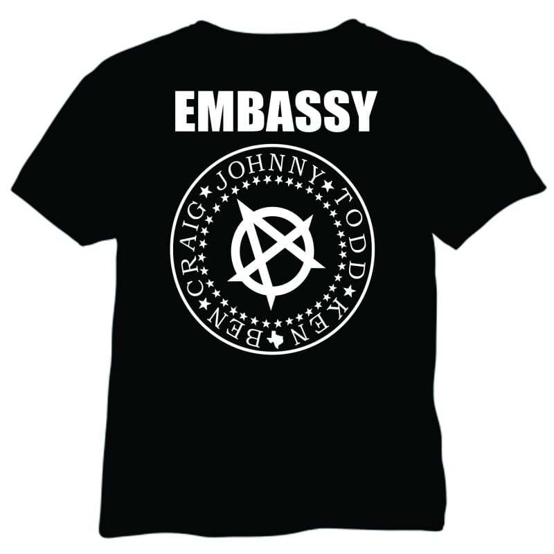 Embassy Skateboards, RAMONES, Texas Legends, T-Shirt, on 100% Cotton Black, with White Screen Print