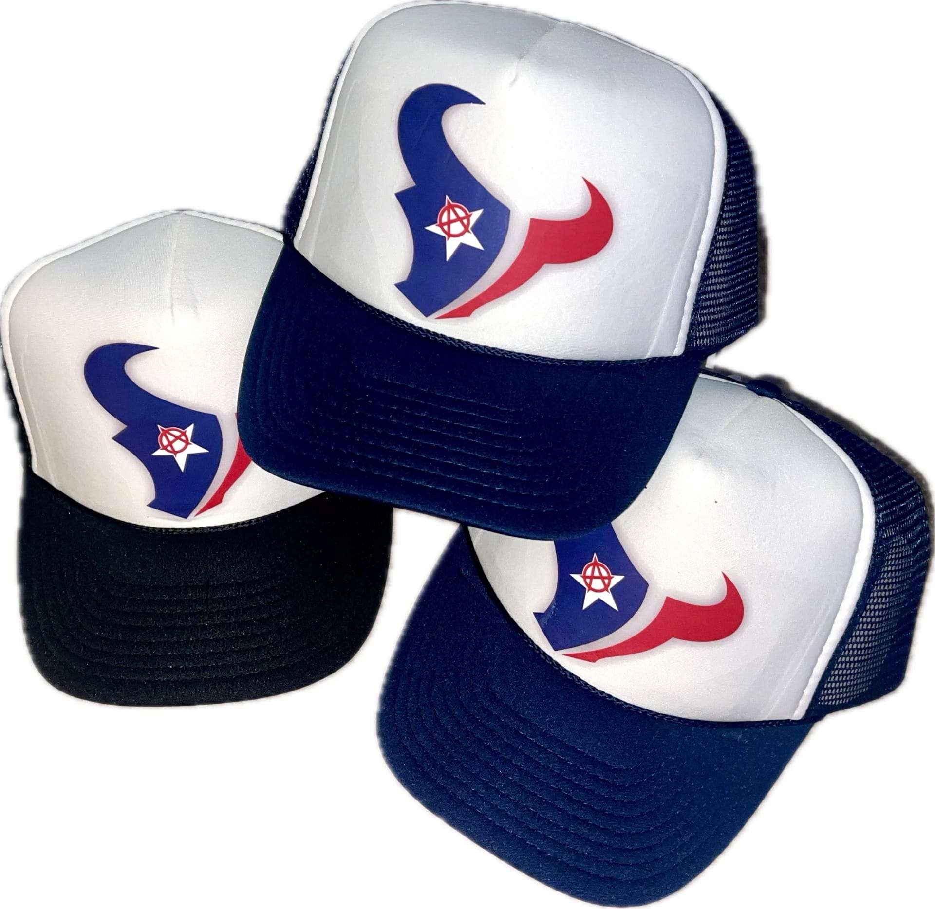 & Free ShippingIt’s September, so here’s the Embassy Texan’s “Tribute” 5 panel, White Foam / Navy Blue snapback trucker cap. It’s a Houston thing, and it’s FUN!!!!
