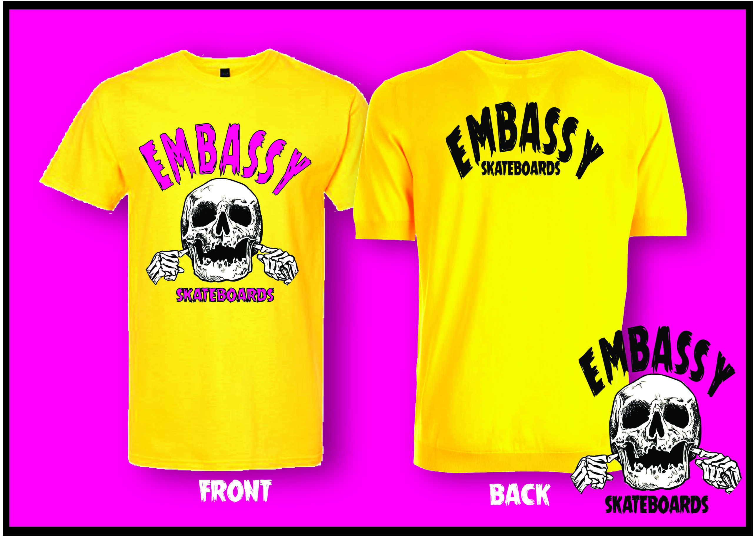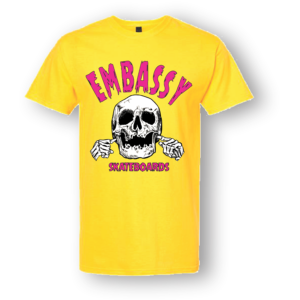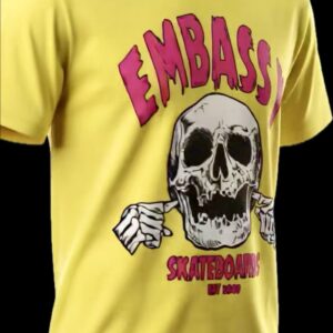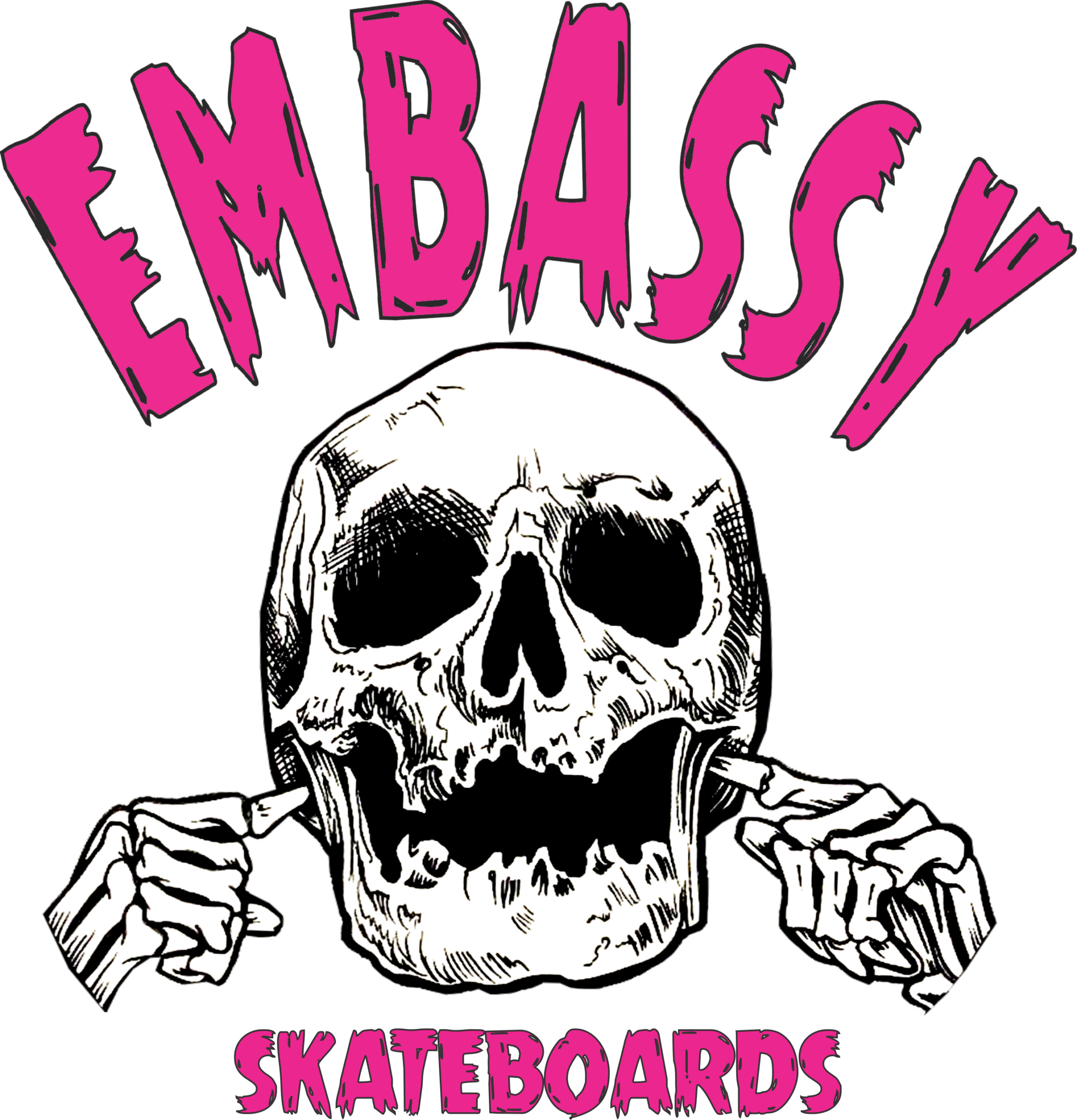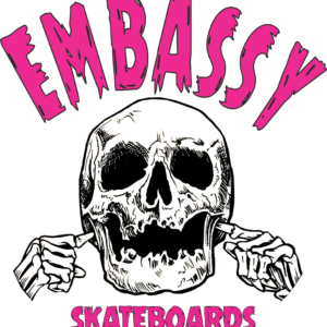 Introducing the Embassy “Hear No Evil” inspired by the OG “Shut up and Skate” classic, now on a Sex Pistols colorway. Printed on 100% cotton. This piece of art comes in all sizes. Embassy Logo on back in black or pink. Available in Small- XXL