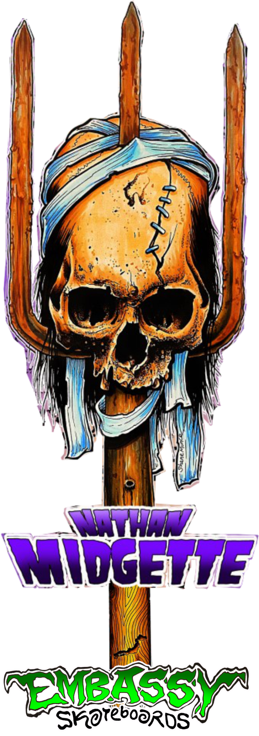 Say HELLO to the Nathan Midgette black t-shirt. Artwork by Shane Munce. Full color madness on black 100% cotton t-shirt. Comes with the “Classic” Embassy logo in white, screen printed on the back. Available in Small- XXL