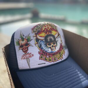 Caps $25.00 Add to cartIntroducing the Embassy Multi-Print Christian Fletcher Cap. This cap brings straight to your everyday fit. This blends bold, mixed graphics with Embassy’s unapologetic attitude. Each graphic hits hard with the Fletcher fearless gritty approach to skating, surfing and self expression. Artwork by Shane Munce. Built for session, road trips, or just chilling with the Homies. This cap delivers standout visuals from every angle. Whether you’re ripping at the park or repping Embassy on the streets, this multi-print cap makes a statement without saying a word.  SKATE LOUD, STAND APART. EMBASSY approved. PERIOD!!!!